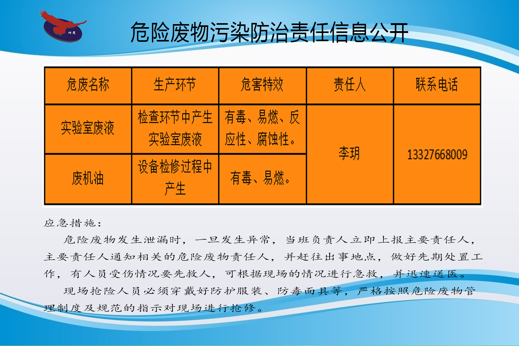 危險廢物發(fā)生泄漏時,一旦發(fā)生異常,當(dāng)班負(fù)責(zé)人立即上報主要責(zé)任人主要責(zé)任人通知相關(guān)的危險廢物責(zé)任人,并趕往出事地點(diǎn),做好先期處置工作,有人員受傷情況要先救人,可根據(jù)現(xiàn)場的情況進(jìn)行急救,并迅速送醫(yī)現(xiàn)場搶險人員必須穿戴好防護(hù)服裝、防毒面具等,嚴(yán)格按照危險廢物管理制度及規(guī)范的指示對現(xiàn)場進(jìn)行搶修。